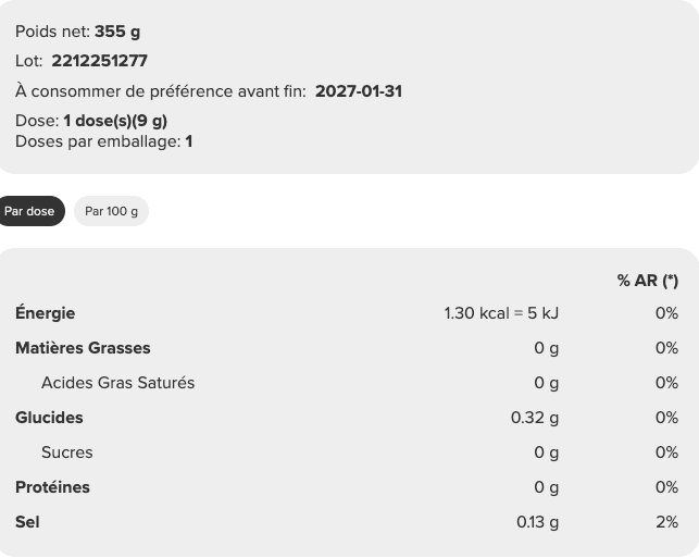 ✅ Sans sucre ajouté, idéale pour un régime hypocalorique.